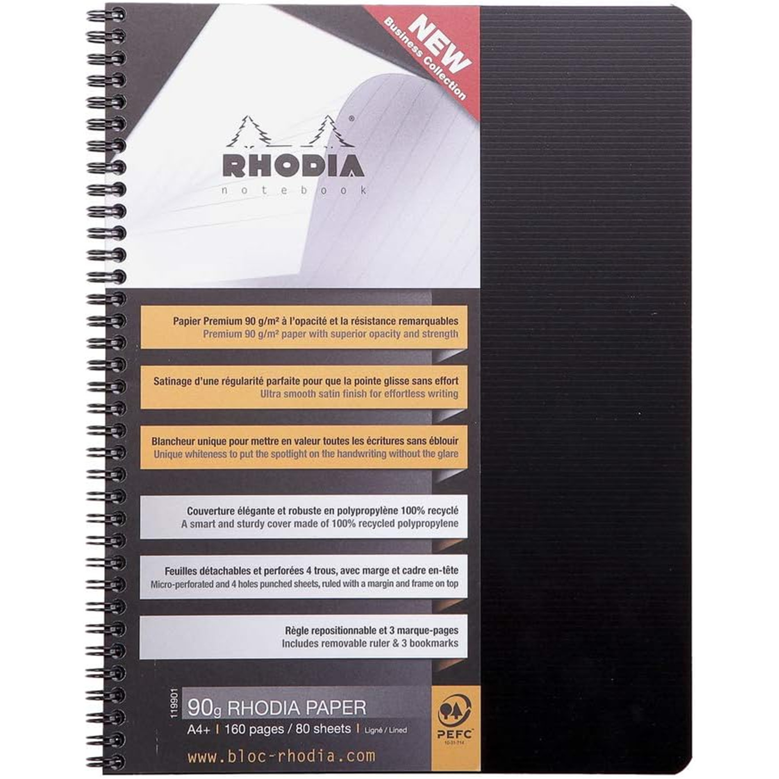The Rhodiactive Notebook Spiral A4+ Lined Black is part of the Rhodiactive Professional Office Collection, a new range of notebooks and notepads designed with business in mind. This collection offers a contemporary, professional look that balances functionality with sharp style, helping professionals stay organised and efficient.