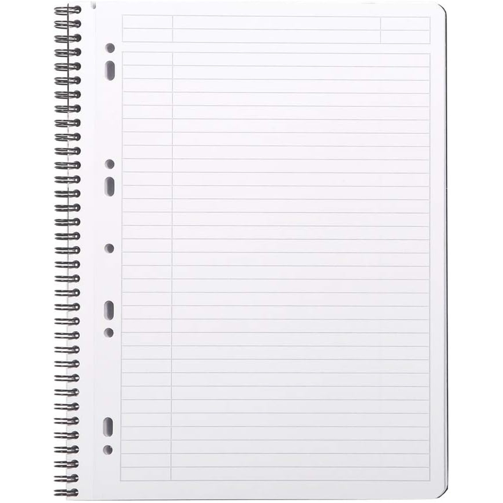 The double spiral wire binding allows effortless page turning, while micro-perforated sheets make page removal easy. Once removed, pages are A4 in size and pre-punched with 9 holes for filing. The notebook also includes a removable ruler and three repositionable bookmarks, enhancing organisation and convenience.