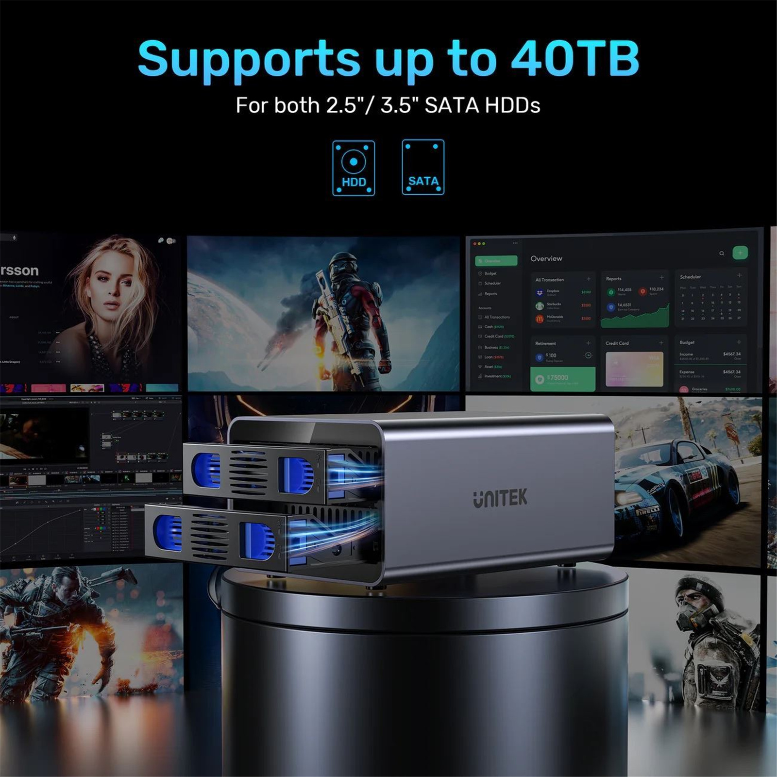 UNITEK 2-Bay SATA Enclosure is the perfect solution for those in need of a reliable and stable storage system. With up to 40TB storage capacity, this enclosure can meet a variety of work requirements. Supports 4 modes, Excellent Heat Dissipation.