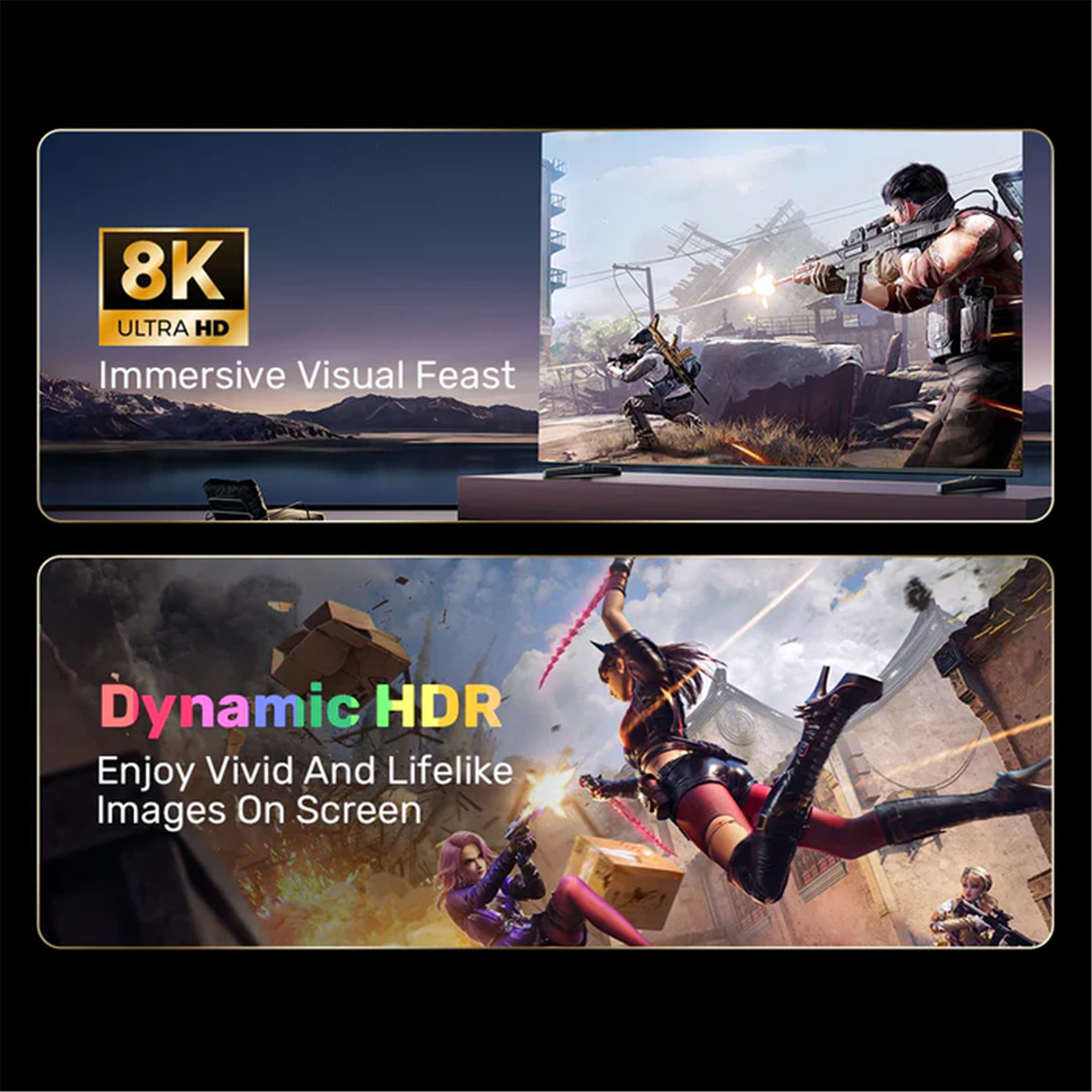 Supports up to 32.4Gbps bandwidth, which ensures the comprehensive signals can be transferred without latency. Other features includes 8K resolution, DSC1.2, Dynamic HDR, FEC, BT.2020 color space, 32 audio channels, 1536kHz sample rate, HDCP2.3 and more.