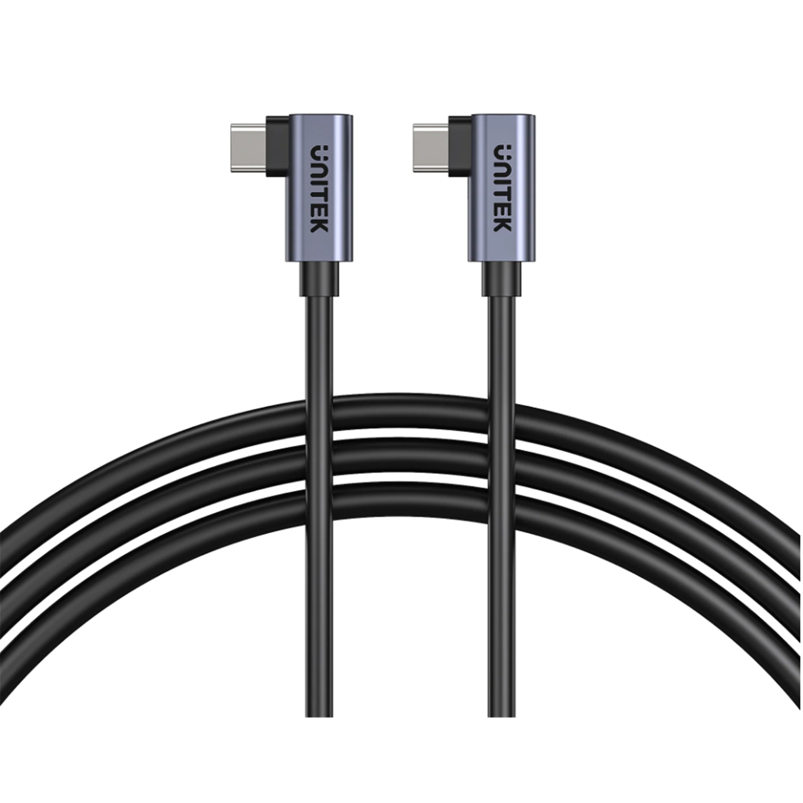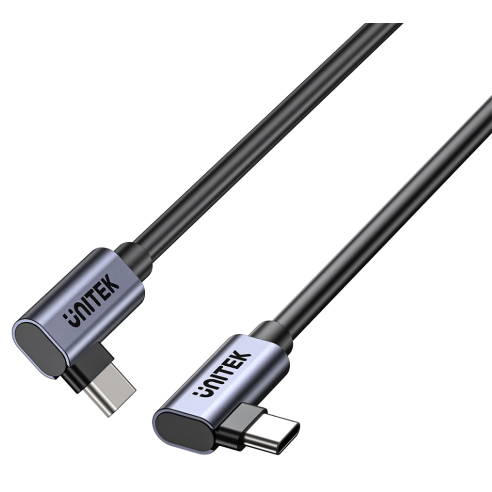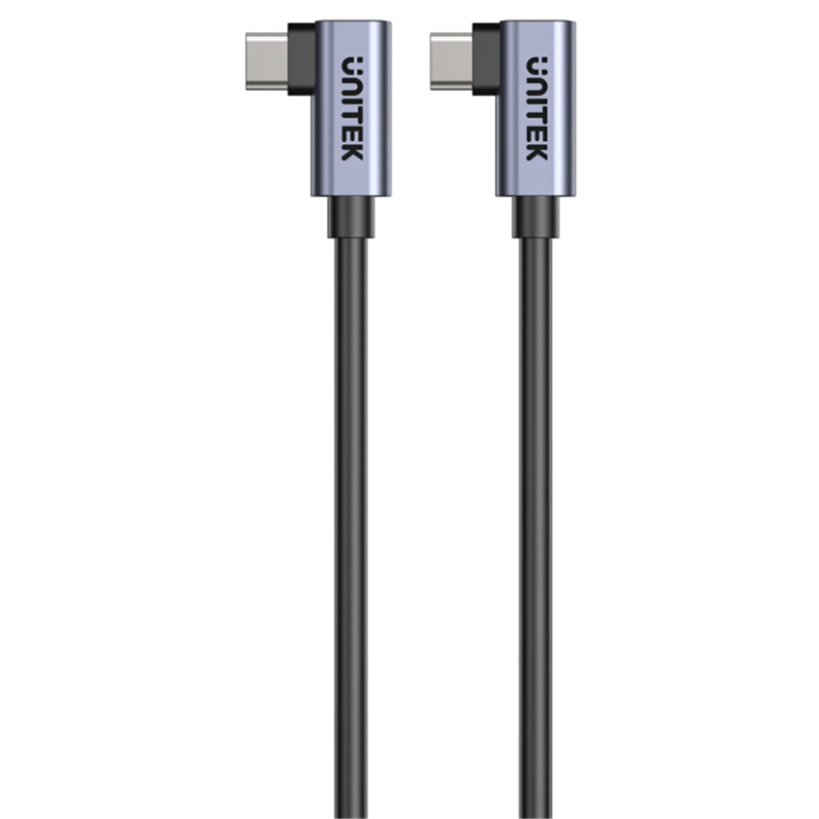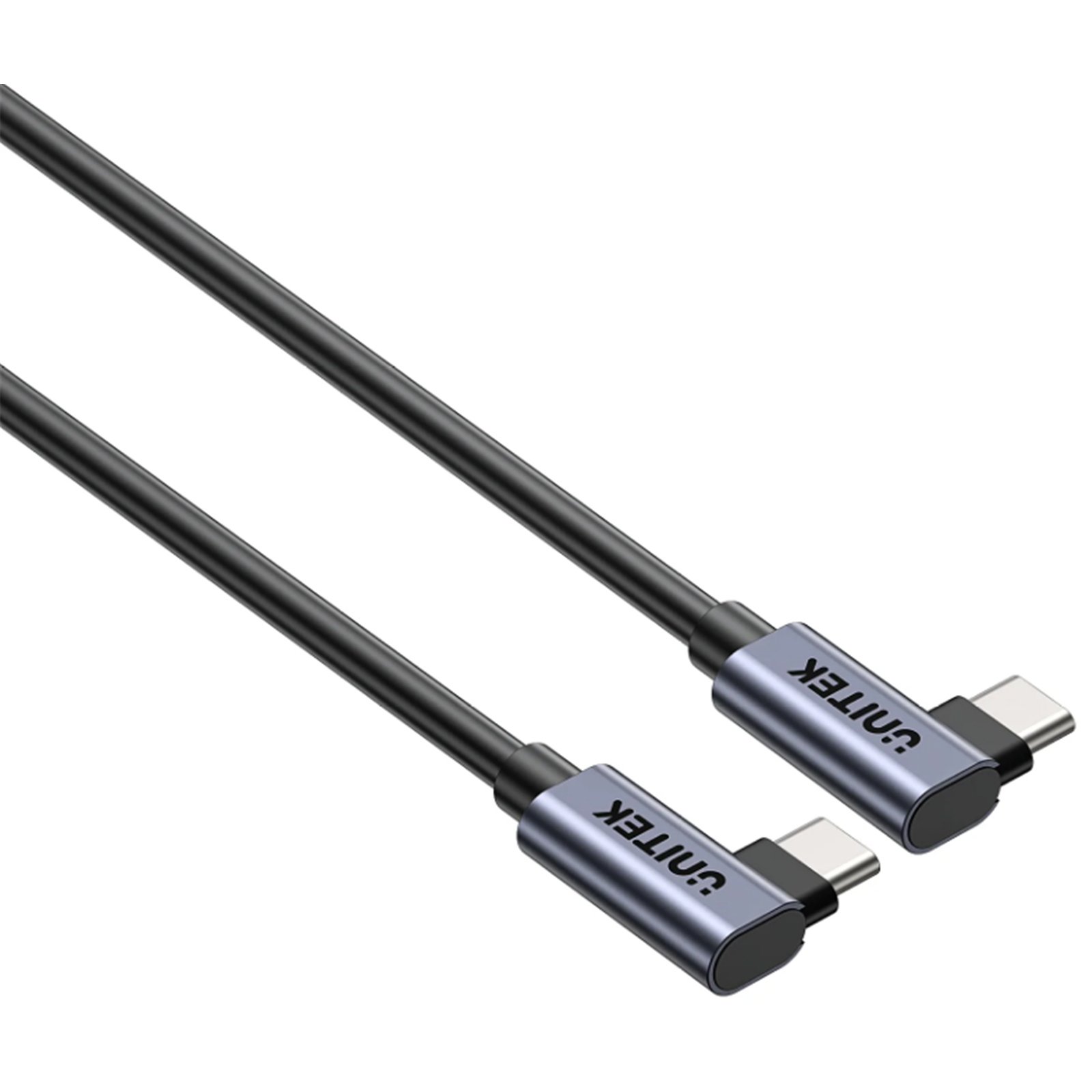 Unitek 0.5m 100W Right Angle USB-C to Right Angle USB-C Cable. Supports PD3.0/QC3.0 Fast Charging,Dual 90-Degree Connectors, Data Transfer in Seconds, Aluminium Space Grey Connectors, Black Cable
