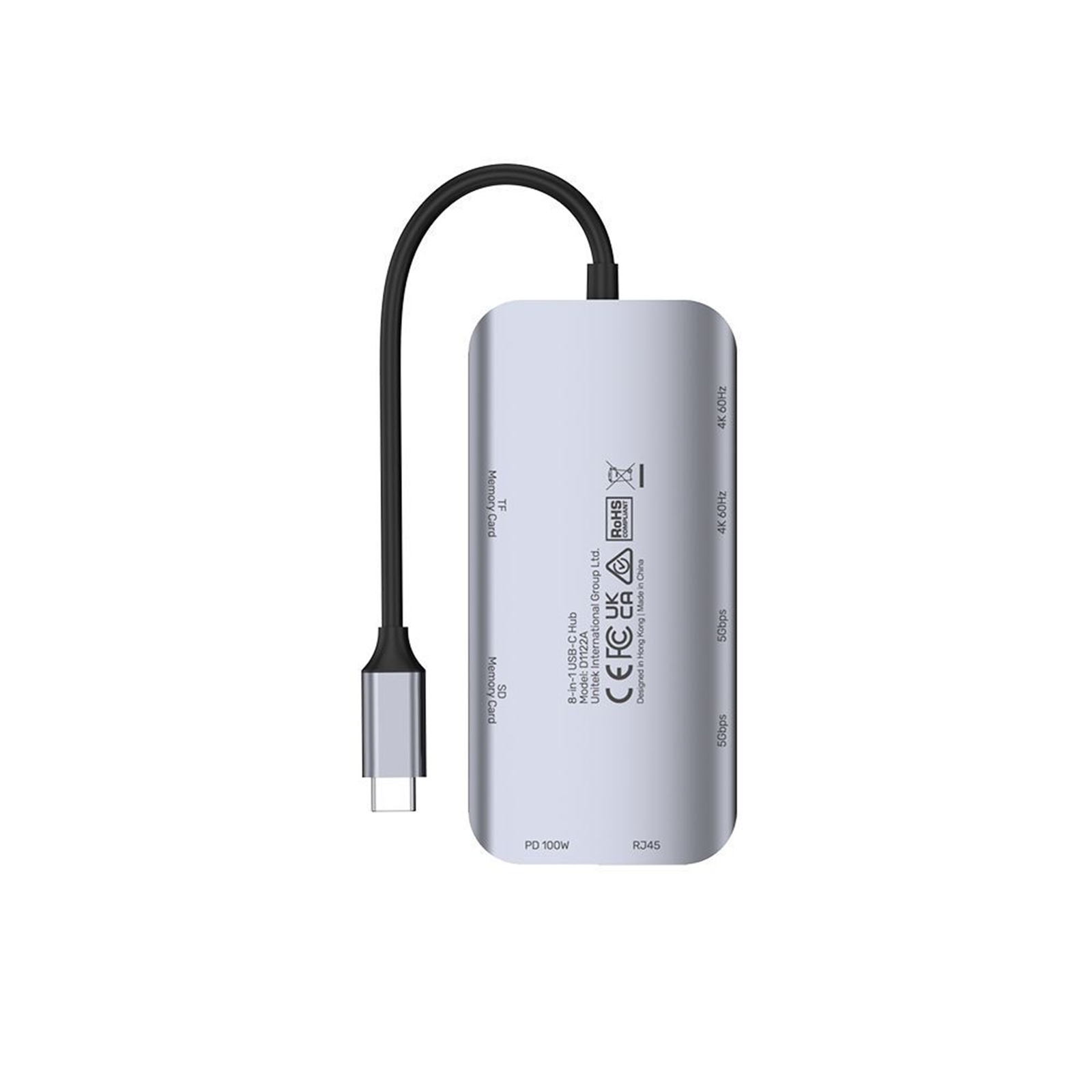 Unitek 8-in-1 5Gbps USB Multi-Port Hub with USB-C Connector - Space Grey Includes 2x USB-A 3.0 Ports - 2x HDMI 4K60Hz Ports - SD/Micro SD - Gigabit Ethernet Port - Supports 100W PD