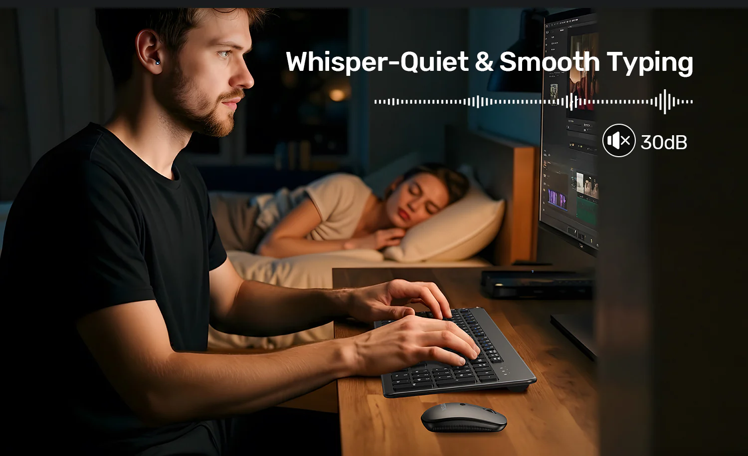 Scissor-structure key switches deliver responsive, quiet typing with minimal travel distance for enhanced comfort and efficiency.