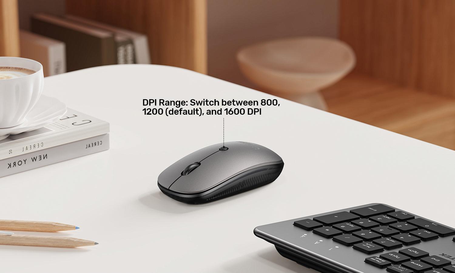 The mouse features a 1600 DPI high-precision sensor for swift response and low latency. One-click DPI adjustment allows easy switching between 800 (LED flashes once), 1200 (flashes twice), and 1600 (flashes three times) DPI settings to meet various precision needs.