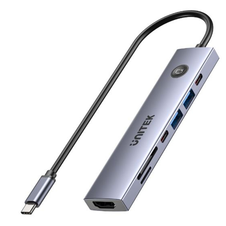 Unitek H1124AGY uHUB S7 Pro 7-in-1 5Gbps USB-C Hub with Screen On/Off button 4K 60Hz, PD 100W, and SD/micro