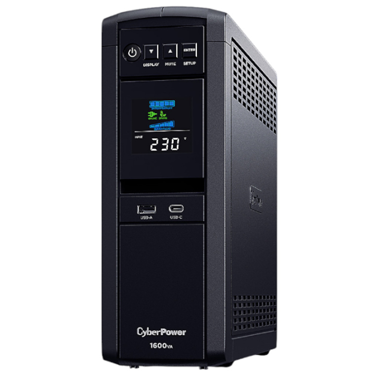 CyberPower CP1600EPFCLCD with Pure Sine Wave output safeguards mid- to high-end computer systems, servers and networking hardware that use conventional and Active Power Factor Correction (PFC) power supplies. Designed with GreenPower UPS™ Technology to improve UPS operating efficiency and to minimize its energy consumption, this UPS delivers significant energy cost savings over conventional UPS systems.