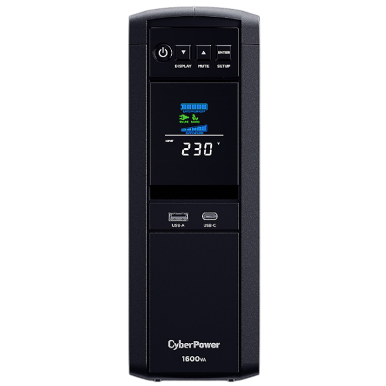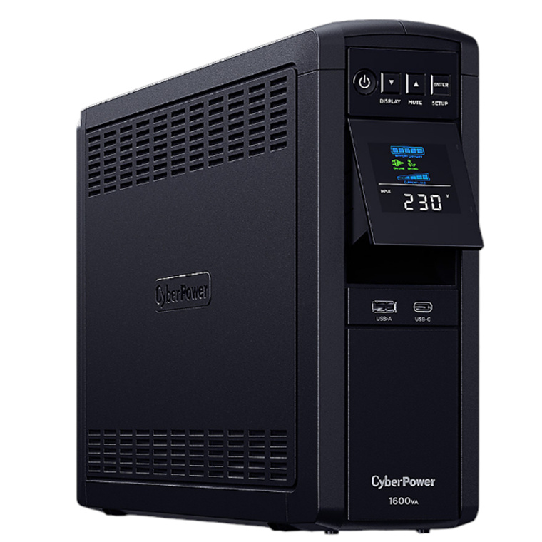 CyberPower PFC Sinewave Series 1600VA / 1000W Tower UPS with LCD 6 NZ Outlets, USB-A , USB-C Charging port, 2 Years advance replacement warranty
