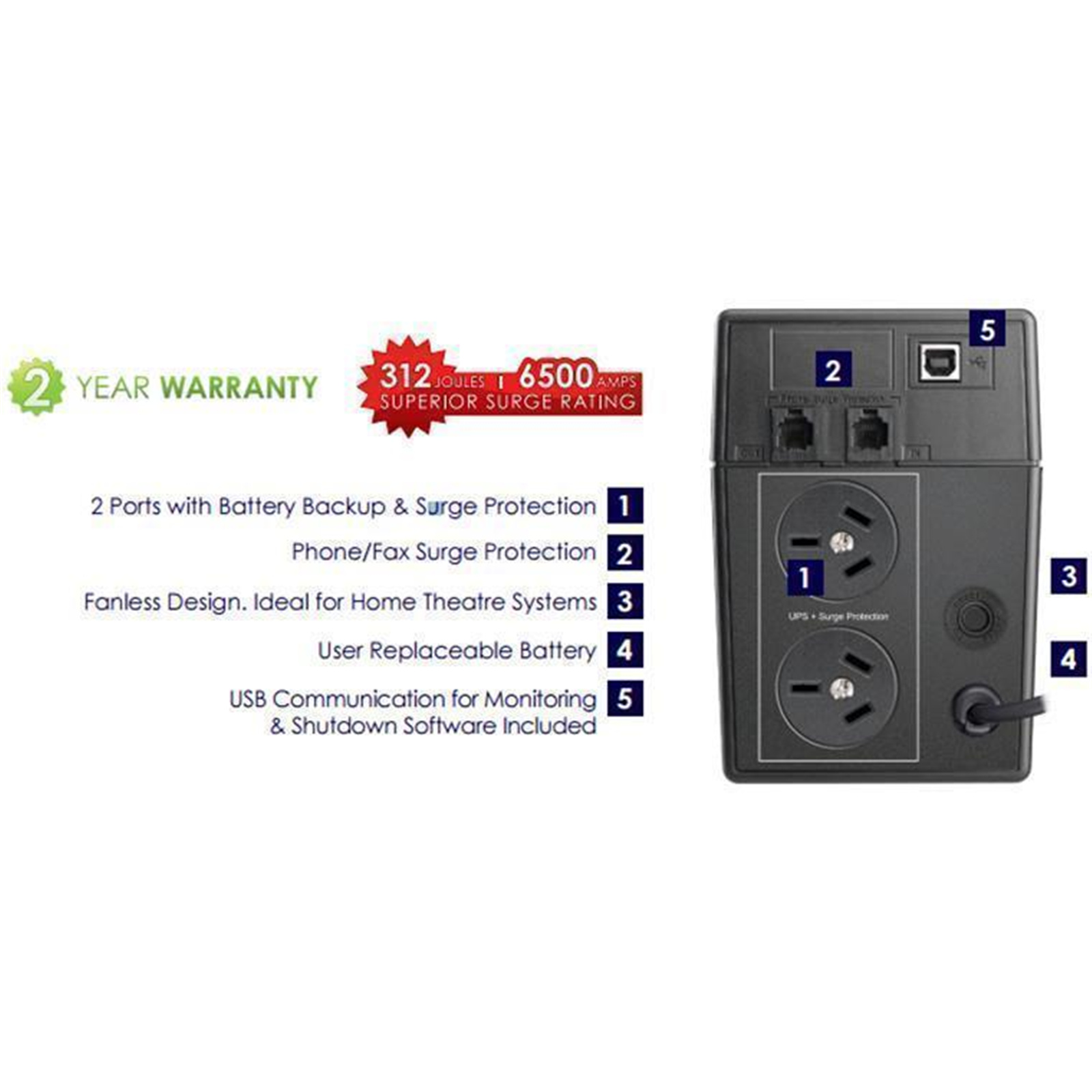 - Australian/NZ outlets for UPS and Surge protection (x2)