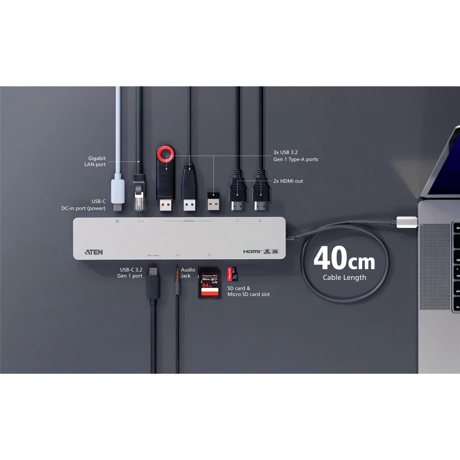 Aten UH3240 11-in-1 USB-C Dual 4K Docking Station with 100W Power Pass Through