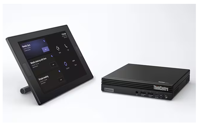 Certified for Microsoft Teams Rooms and powered by 13th Gen Intel® Core™ i3 processor, the ThinkSmart Tiny Kit is a collaboration maestro with a compact compute, ample memory, storage, and connectivity ports. Easily control and share content with the ThinkSmart USB Controller, an intuitive 10.1-inch, 10-point touch antiglare and smudgeless display.
