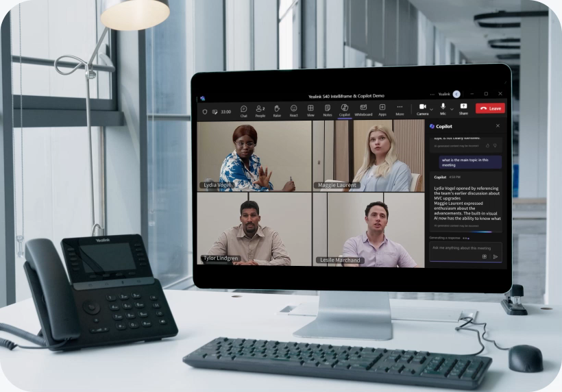 Powered by 45% more CPU performance and 10x AI processing power, the class-leading QCS8550 enables advanced AI capabilities such as Best-view Switching, and Multi-camera IntelliFocus. With intelligent and agile camera control, it selects and displays the optimal perspective in a blink-ensuring every participant is perfectly presented. Elevate your meetings with more AI possibilities, built on Yealink's future-proof solution.