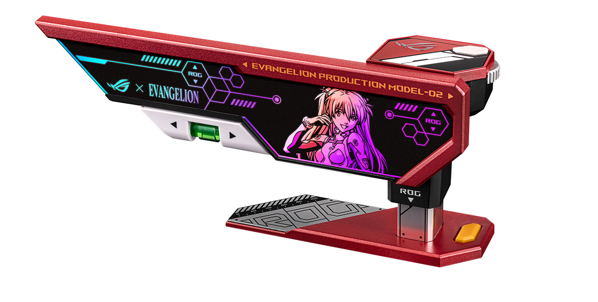 ROG Herculx EVA-02 Edition is a powerhouse with the structural integrity to support even the heaviest graphics cards. Its toolless installation, precision adjustability, and customizable RGB lighting are housed in a space-saving design, ensuring your GPU horsepower is protected. The lighting panel showcases an eye-catching Asuka theme, while also drawing inspiration from the EVA Restraint Platform in the iconic EVA-02 color scheme. Versatile and visually stunning, the ROG Herculx EVA-02 Edition seamlessly complements other EVA-02 equipment, creating a cohesive and captivating setup.