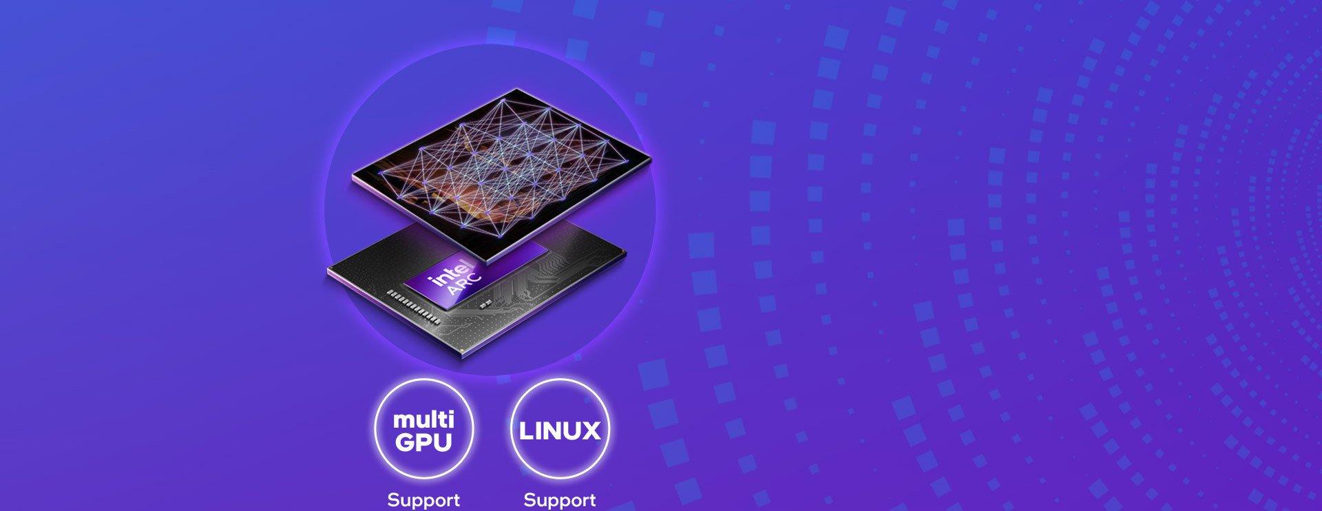 Gain scalable performance with Linux multi-GPU LLM support from the Intel® Arc™ Pro B60 GPU, optimized to run larger, more advanced AI for higher quality and faster outputs.