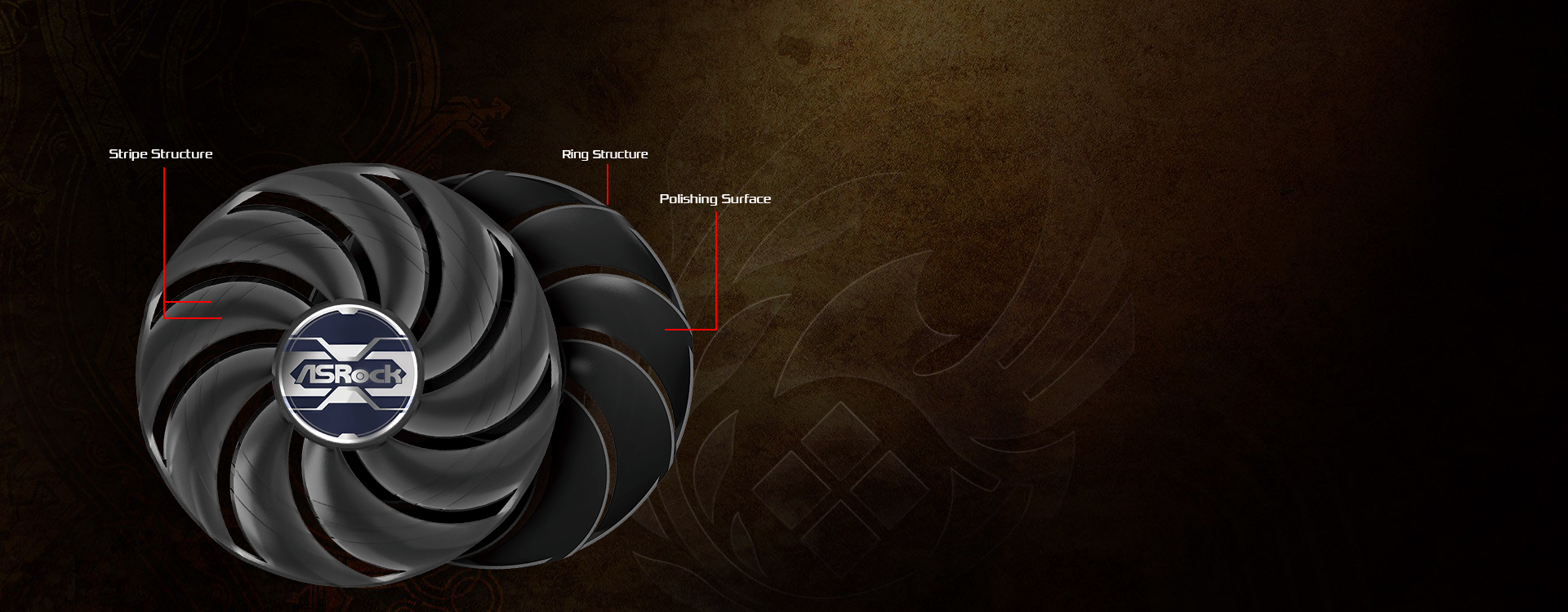 ASRock's all new Striped Ring Fan get more lateral intake and to provide better airflow through the cooling array.