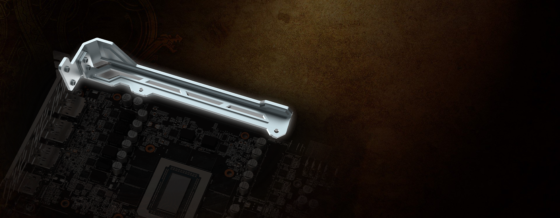 Designed to avoid PCB bending. The fancy outlook makes the graphic card more legendary in visual. It also helps to enhance cooling with the premium thermal pads equipped backside.
