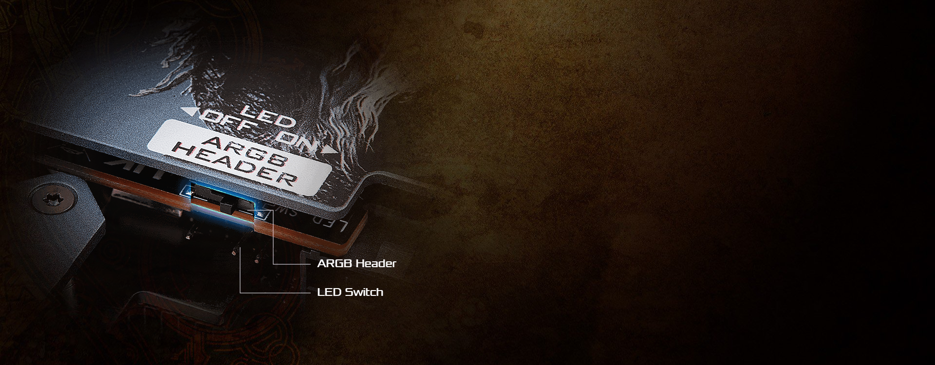 With the ARGB Header, it can connect extra ARGB strips/devices to make the lighting effects more rich and vivid.