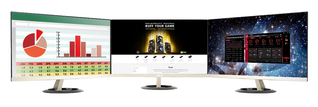 ASUS GeForce GT 710 is a compact graphics card with three outputs (HDMI, DVI and D-Sub) that can support up to three displays at the same time for convenient multitasking.