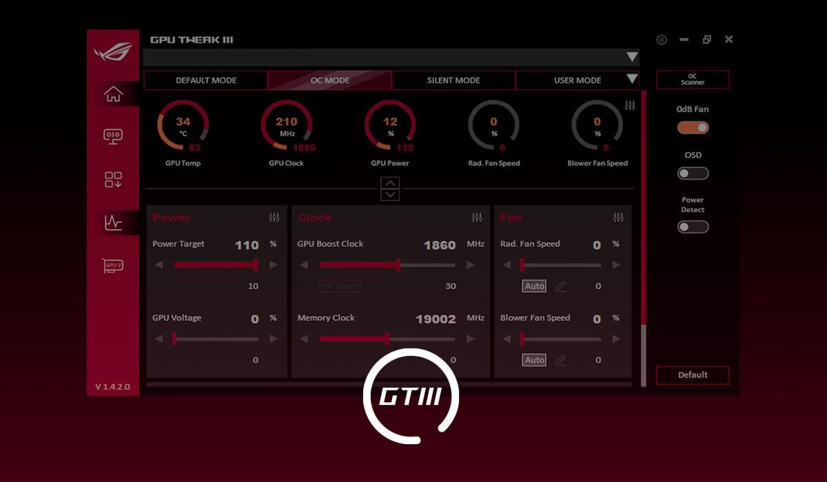 The ASUS GPU Tweak III utility takes graphics card tuning to the next level. It lets you tweak critical parameters including GPU core clocks, memory frequency and voltage settings, with the option to monitor everything in real-time through a customizable on-screen display. Advanced fan control is also included along with many more features to help you get the most out of your graphics card.
