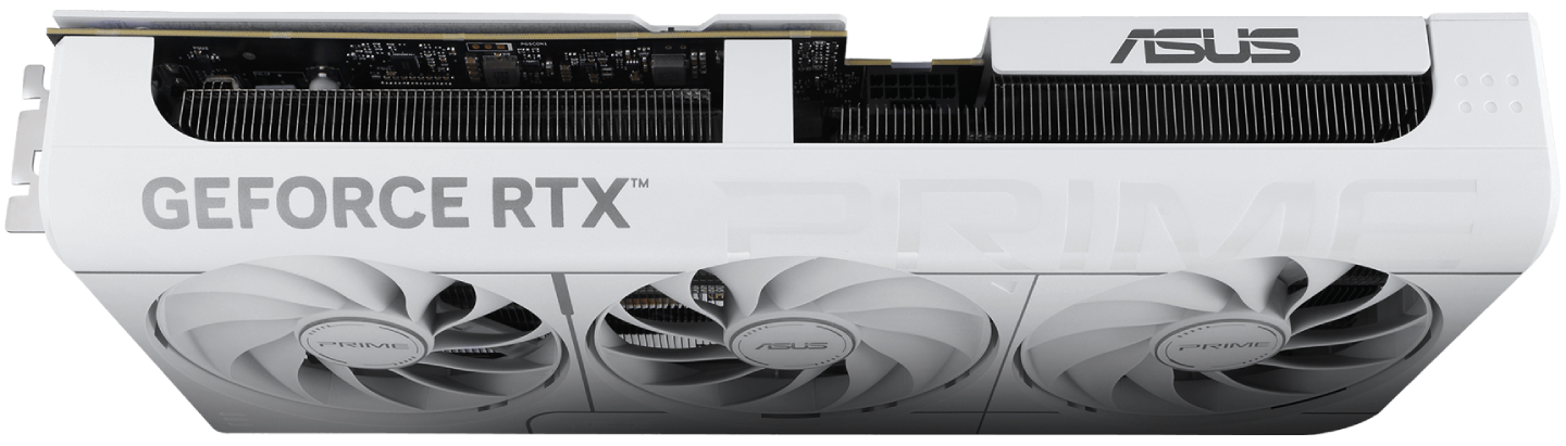 The Prime RTX 5070 White Edition features a 2.5 slot design with a carefully arranged layout for the shroud, heatsink and heat pipes to let the three Axial-tech fans leverage chassis side-panel ventilation and deliver optimal thermal performance.