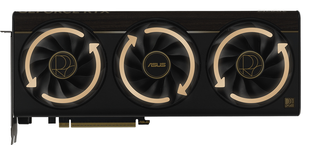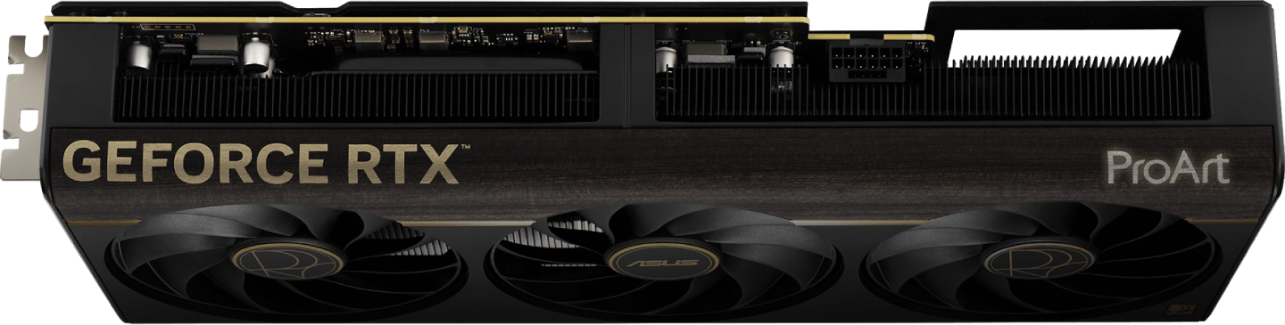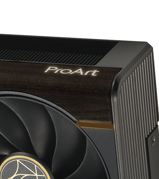The ProArt GeForce RTX™ 5080 combines a compact 2.5-slot design with potent cooling - three Axial-tech fans, a vapor chamber, and a phase-change GPU thermal pad - to deliver GeForce RTX 50 Series performance to both full-scale towers and space-saving SFF builds. A USB Type-C® port enhances versatility for content creation workflows, while a wood-patterned laminate trim and low-key Aura-lit logo help deliver a refined aesthetic.