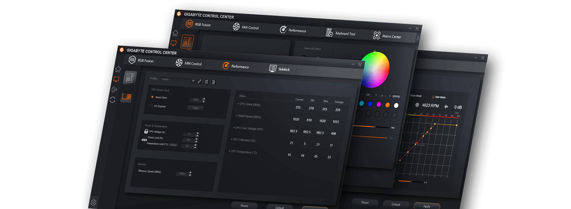 GIGABYTE CONTROL CENTER (GCC) is a unified software for all GIGABYTE supported products. It provides an intuitive interface that allows users to adjust clock speed, voltage, fan mode and power target in real-time.