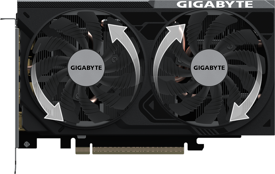 The WINDFORCE cooling system features two 90mm unique blade fans, alternate spinning, 3 composite copper heat pipes directly touch the GPU, 3D active fans and Screen cooling, which together provide high efficiency heat dissipation.