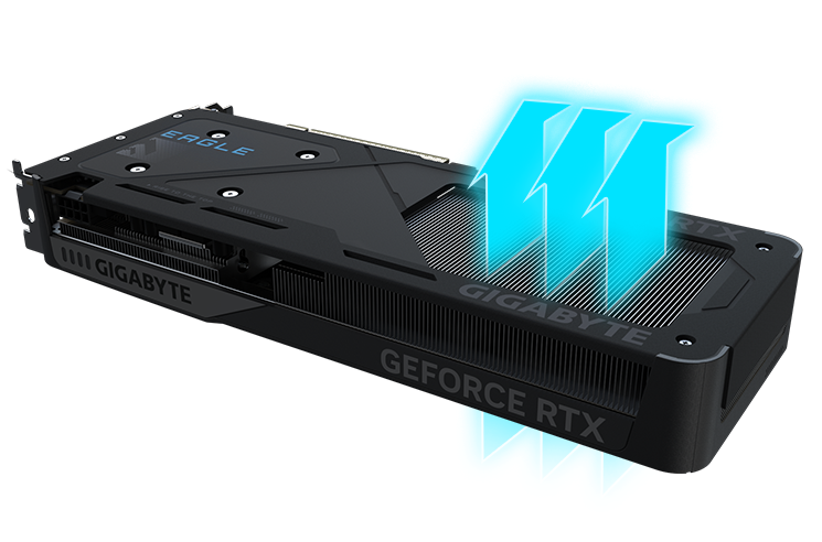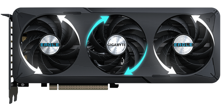 The WINDFORCE cooling system delivers exceptional thermal performance through a combination of cutting-edge technologies. It features server-grade thermal conductive gel, innovative Hawk fans with alternate spinning, composite copper heat pipes, a copper plate, 3D active fans, and screen cooling.
