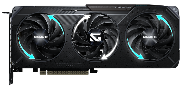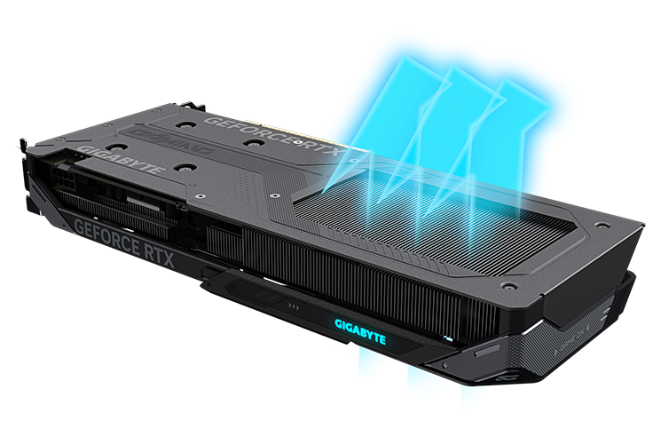 The WINDFORCE cooling system delivers exceptional thermal performance through a combination of cutting-edge technologies. It features server-grade thermal conductive gel, innovative Hawk fans with alternate spinning, composite copper heat pipes, a copper plate, 3D active fans, and screen cooling.