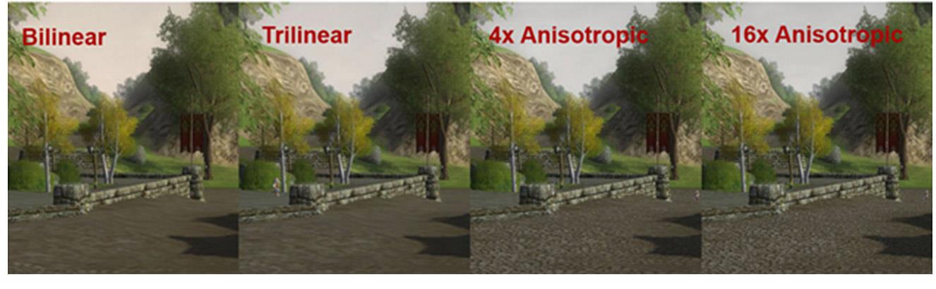 Anisotropic filtering improves the clarity and crispness of textured objects in rendering. Textures are images containing various types of data such as color, transparency, reflectivity, and bumps (normals) that are mapped to an object and processed by the GPU in order to give it a realistic appearance on your screen