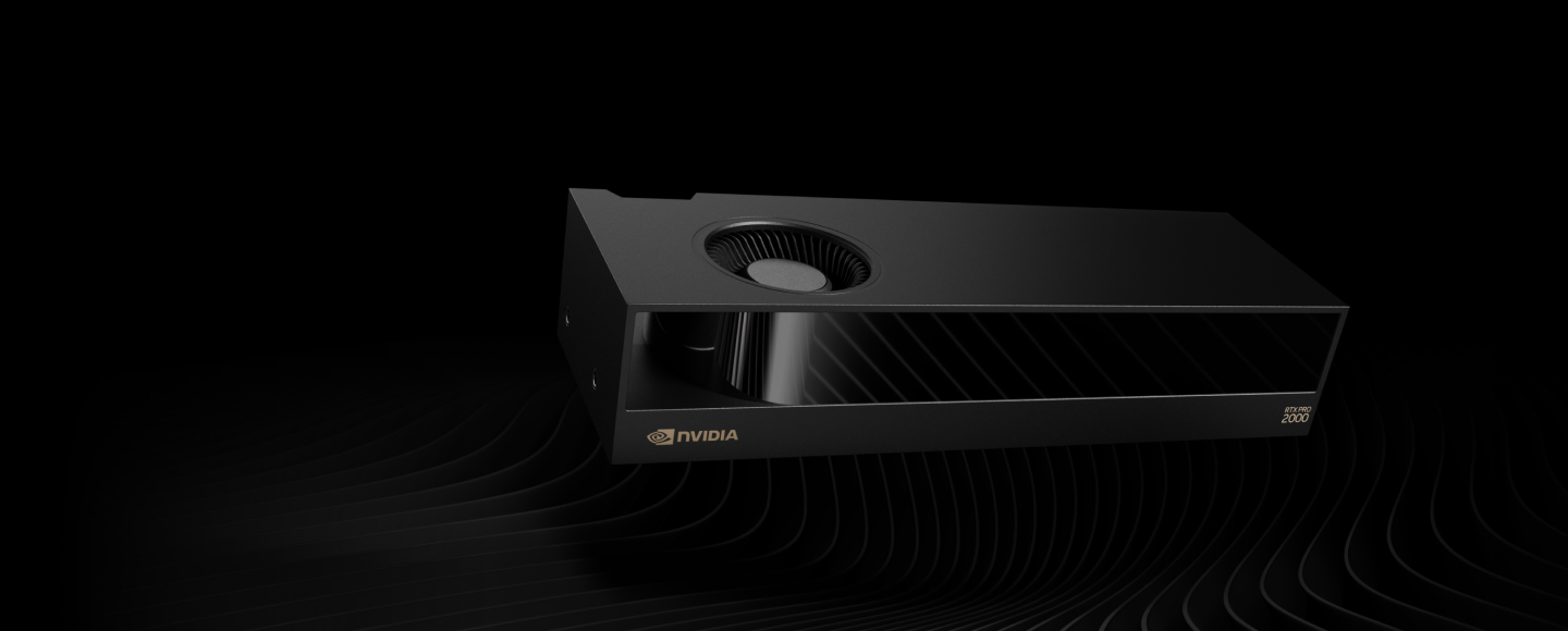 The NVIDIA RTX PRO™ 2000 Blackwell accelerates professional graphics and AI workloads all from a power-efficient, small-form-factor solution. Featuring the groundbreaking Blackwell architecture and 16 GB of ultra-fast GDDR7 memory, seamlessly elevate complex multi-application workflows with inference at the edge and AI-augmented tools to expand your reach from the desktop.