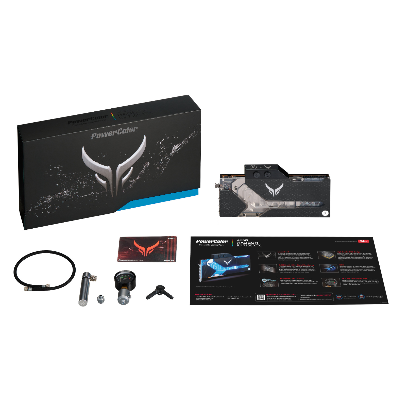 PowerColor Liquid Devil AMD Radeon™ RX 7900 XTX comes with a set of EK-Loop Leak Tester Flex and a small pump, allowing user to test possible leaks on their own in a fast and safe way.