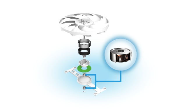 Premium Japanese dual ball bearings to reduce rotational friction, and extend fan lifespan.