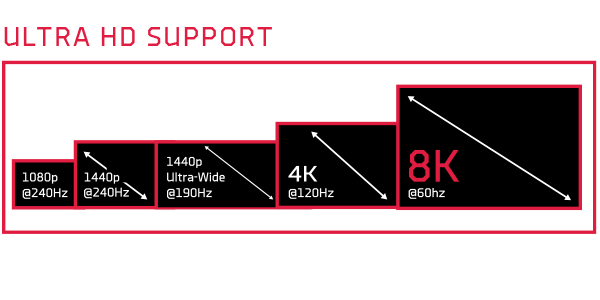 The AMD Radiance Display™ Engine features 12-bit HDR and full coverage of the REC2020 color space for incredible color accuracy. With support for DisplayPort™ 2.1, experience breathtaking visuals with up to 68 Billion colors at up to 8K 165Hz.