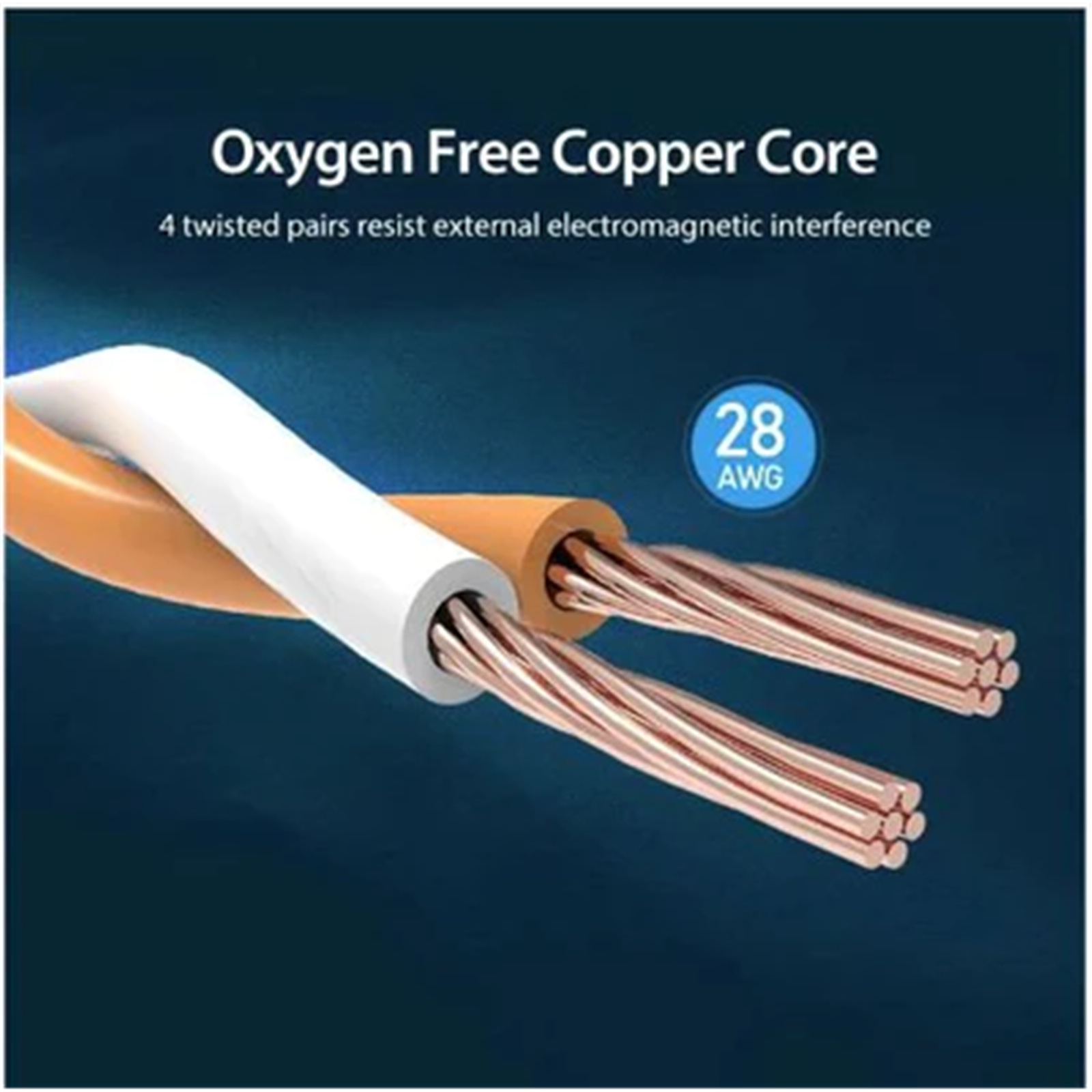 Comparing with other 32AWG cables, this 28AWG Cat8 Ethernet cable is thicker and stronger. The PVC housing is made of oxygen-free, copper core wire for low resistance remote transmission.