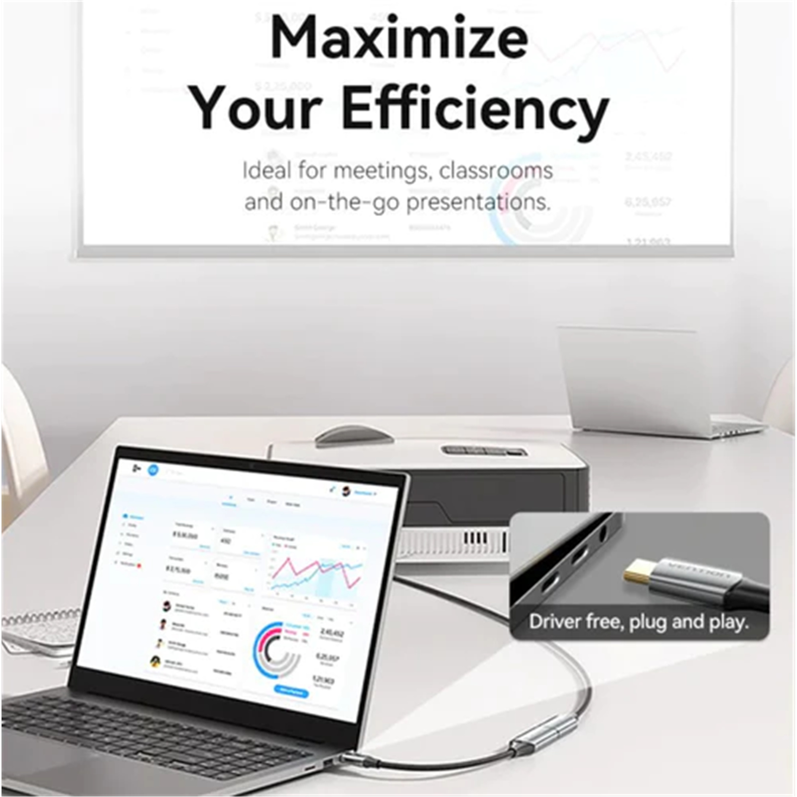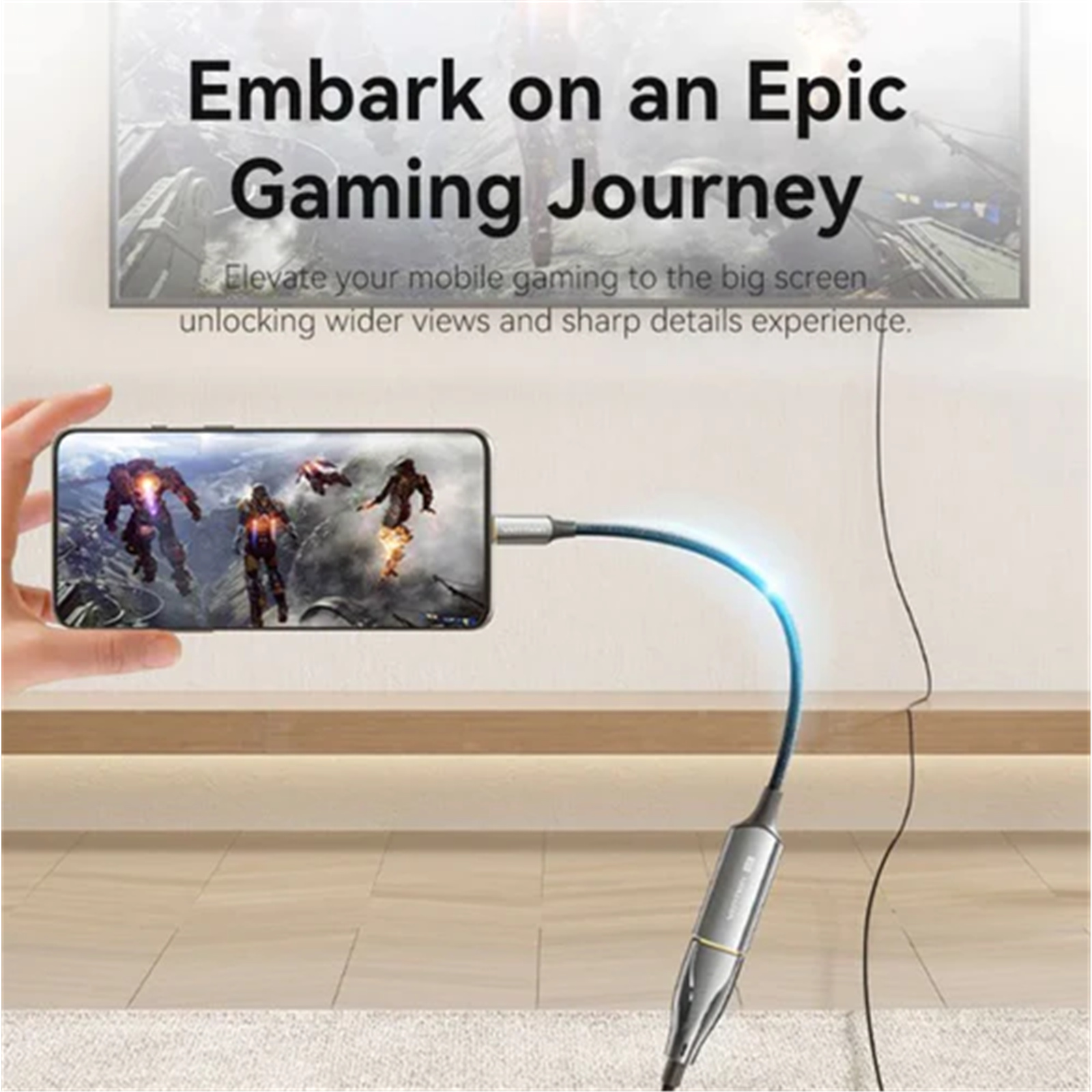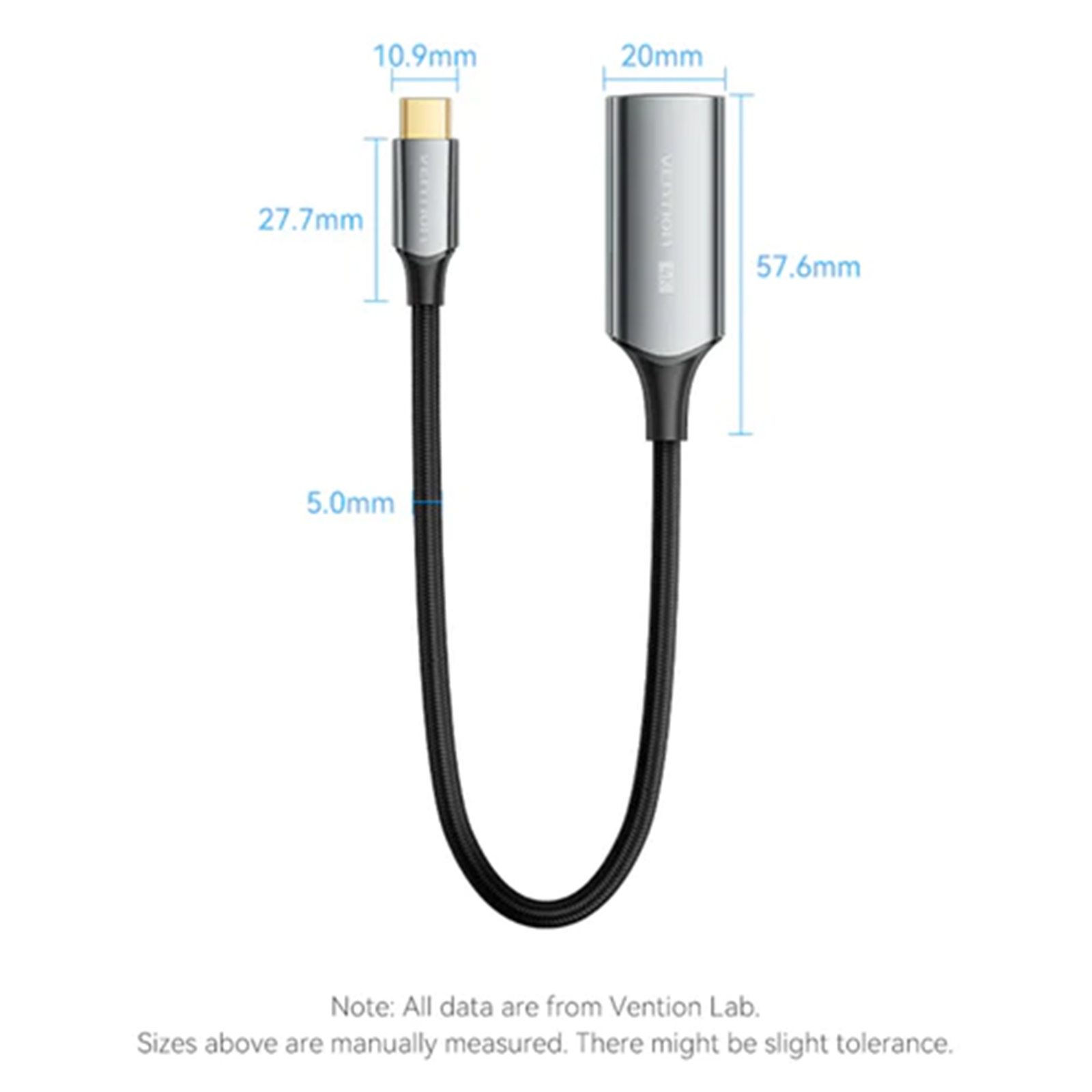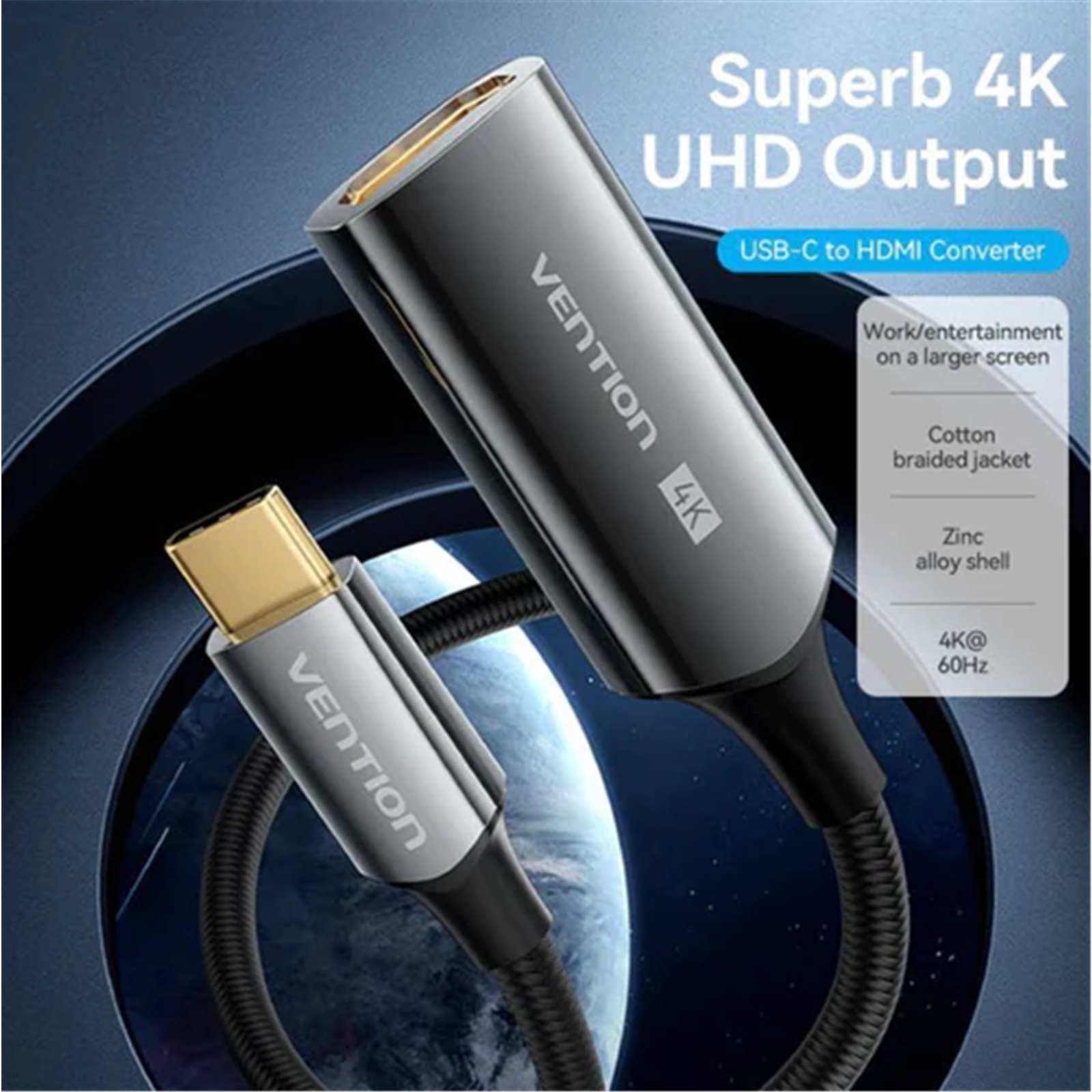 Vention Cotton Braided USB-C to HDMI 4K Converter 0.25M Black Zinc Alloy Type