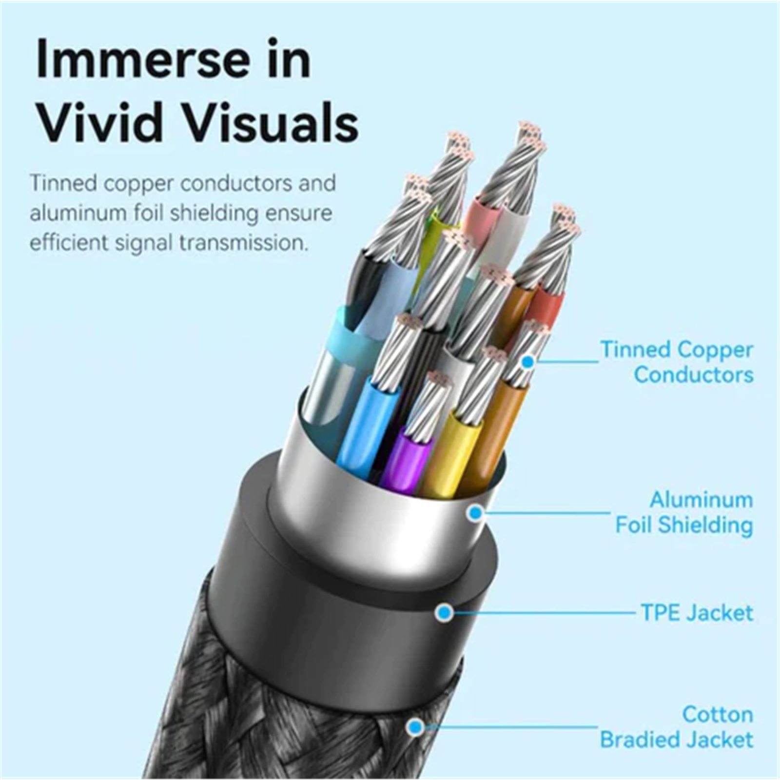 Vention CREBC Cotton Braided USB-C to HDMI 4K Converter 0.25M Black Zinc Alloy Type