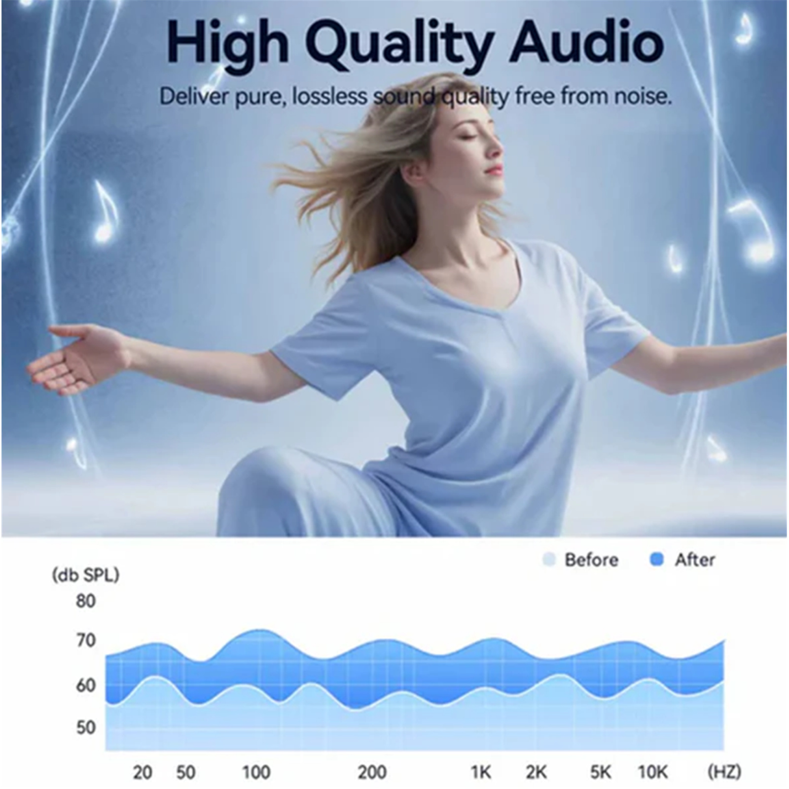 Built-in JieLi Audio Decoder Chip, bring better sound quality and compatiblility. Hi-Fi sound quality, wide, natural soundstage and uncolored sound, bring perfect sound enjoyment to your ears.