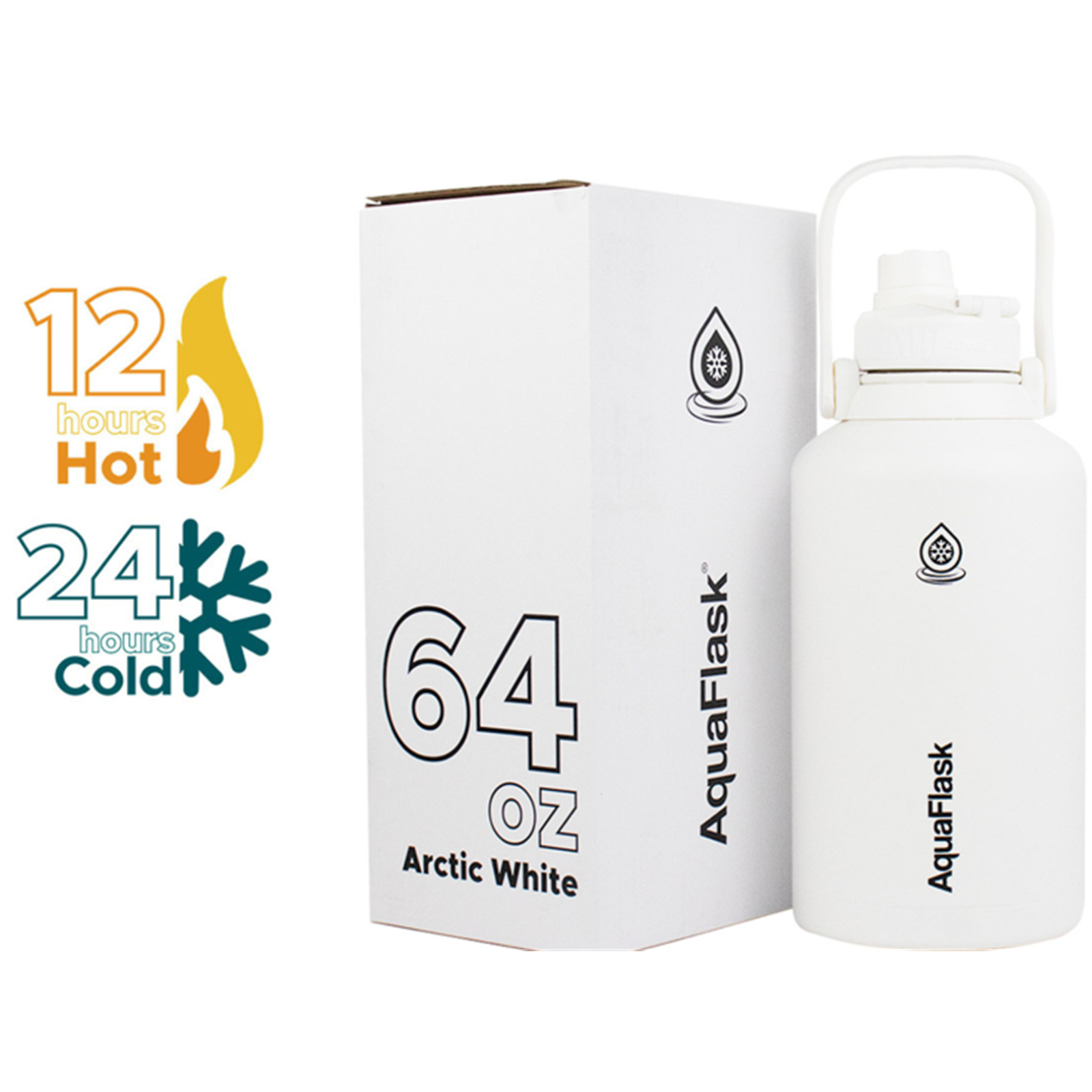 AquaFlask Original 1.89L (64oz) Water Bottles - Arctic White, Keeps Drinks Cold for 24 Hours, Keeps Drinks Hot for 12 Hours, Double-walled stainless steel, BPA Free, Durable, Leak-Proof and Eco-Friendly, Designed in California