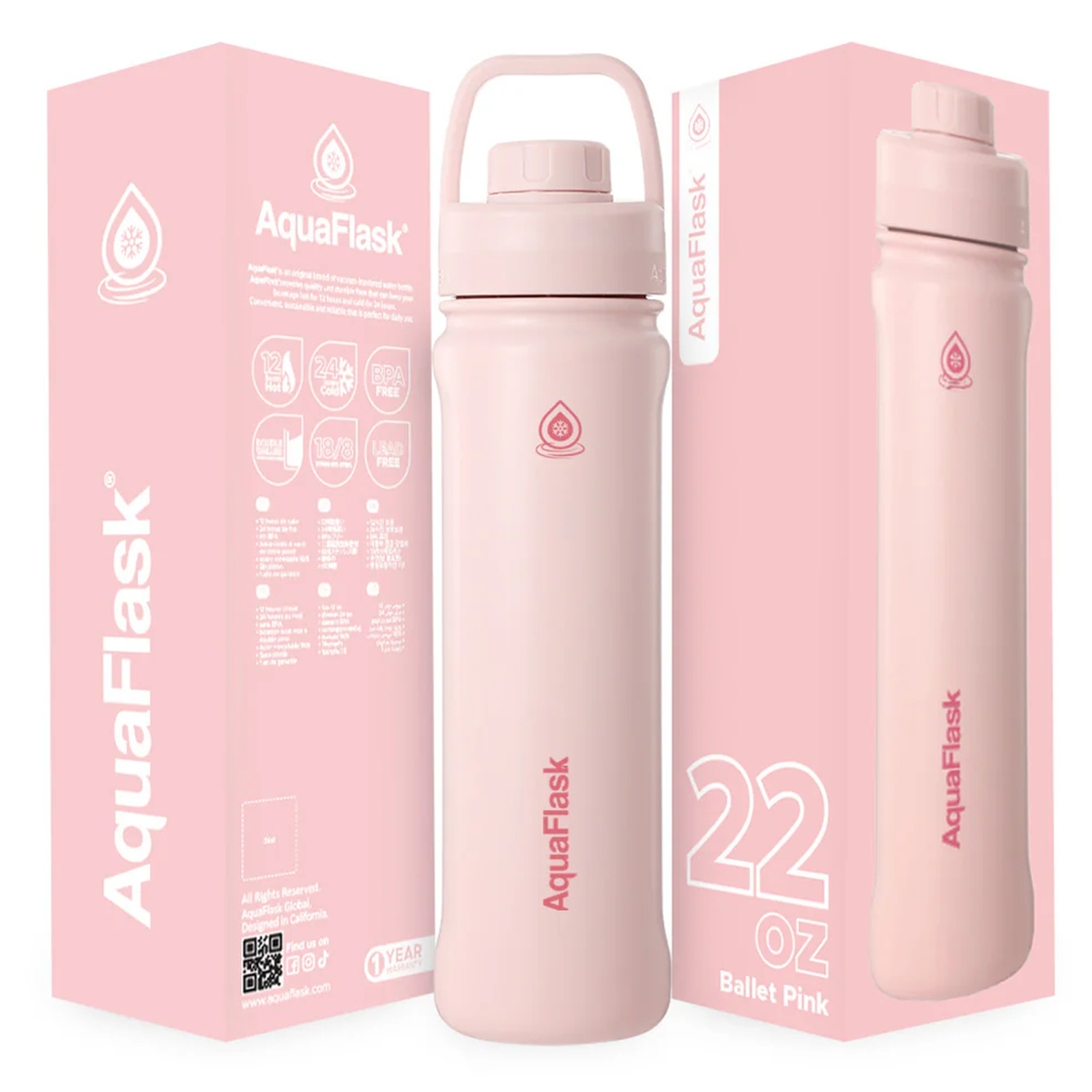 AquaFlask New Regular 650 mL (22oz) Water Bottle - Ballet Pink , Durable, Leak-Proof and Eco-Friendly, Keeps Drinks Cold for 24 Hours, Keeps Drinks Hot for 12 Hours, Double-walled stainless steel, BPA Free, Designed in California