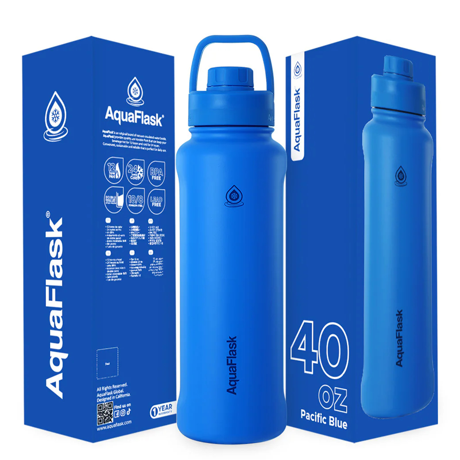 AquaFlask New Regular 650 mL (22oz) Water Bottle - Pacific Blue , Durable, Leak-Proof and Eco-Friendly, Keeps Drinks Cold for 24 Hours, Keeps Drinks Hot for 12 Hours, Double-walled stainless steel, BPA Free, Designed in California