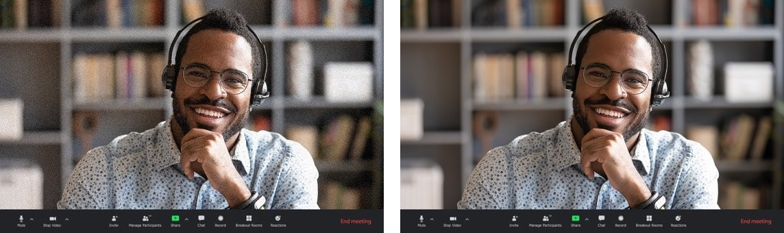 AI Noise Cancellation technology leverages a massive deep-learning database to reduce background noise and enhance speaker's voice.