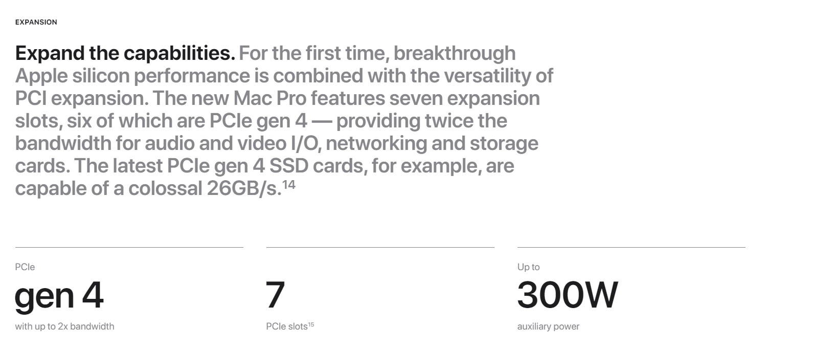 One half-length x4 PCI Express Gen 3 slot with Apple I/O card installed
