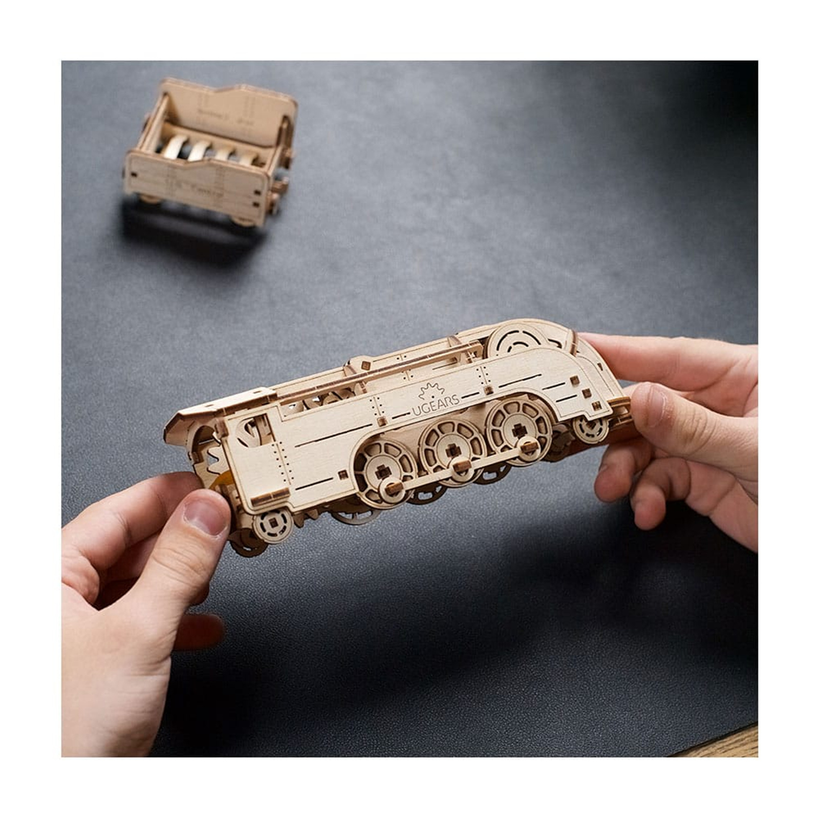 Ugears has designed some beautiful and challenging train models over the years, including the Locomotive, V Express Steam Train with Tender, and Hogwarts™ Express. With the Mini Locomotive, we bring you a simple, "Easy"-rated DIY train model that anyone can build, including junior train enthusiasts.