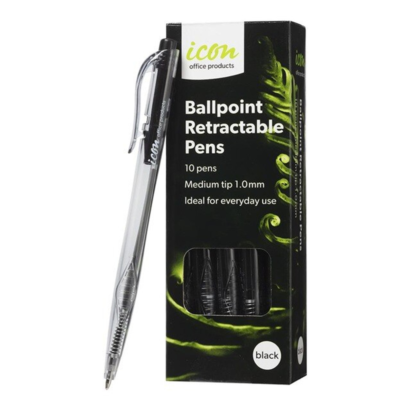 Icon Ballpoint Retractable Pens - Medium - Black - 10 Pack