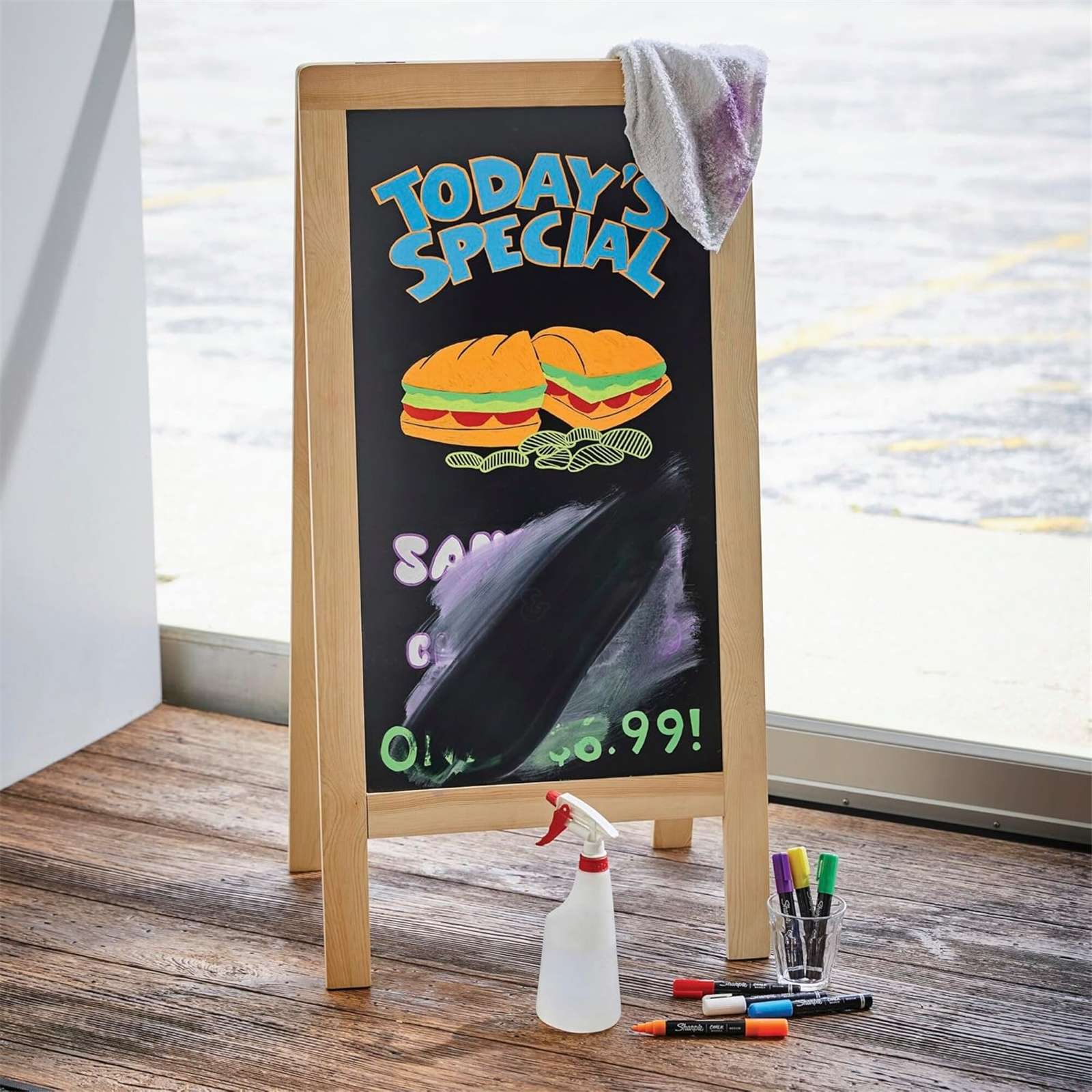 Make your writing or drawing stand out with Sharpie Chalk Markers. These brilliant chalkboard markers mark brightly on black boards, light boards, white boards, windows, glass, and more. And with a damp cloth, they wipe off for convenient cleanup. Depend on these markers for eye-catching displays or writing in the classroom, your business, or home.