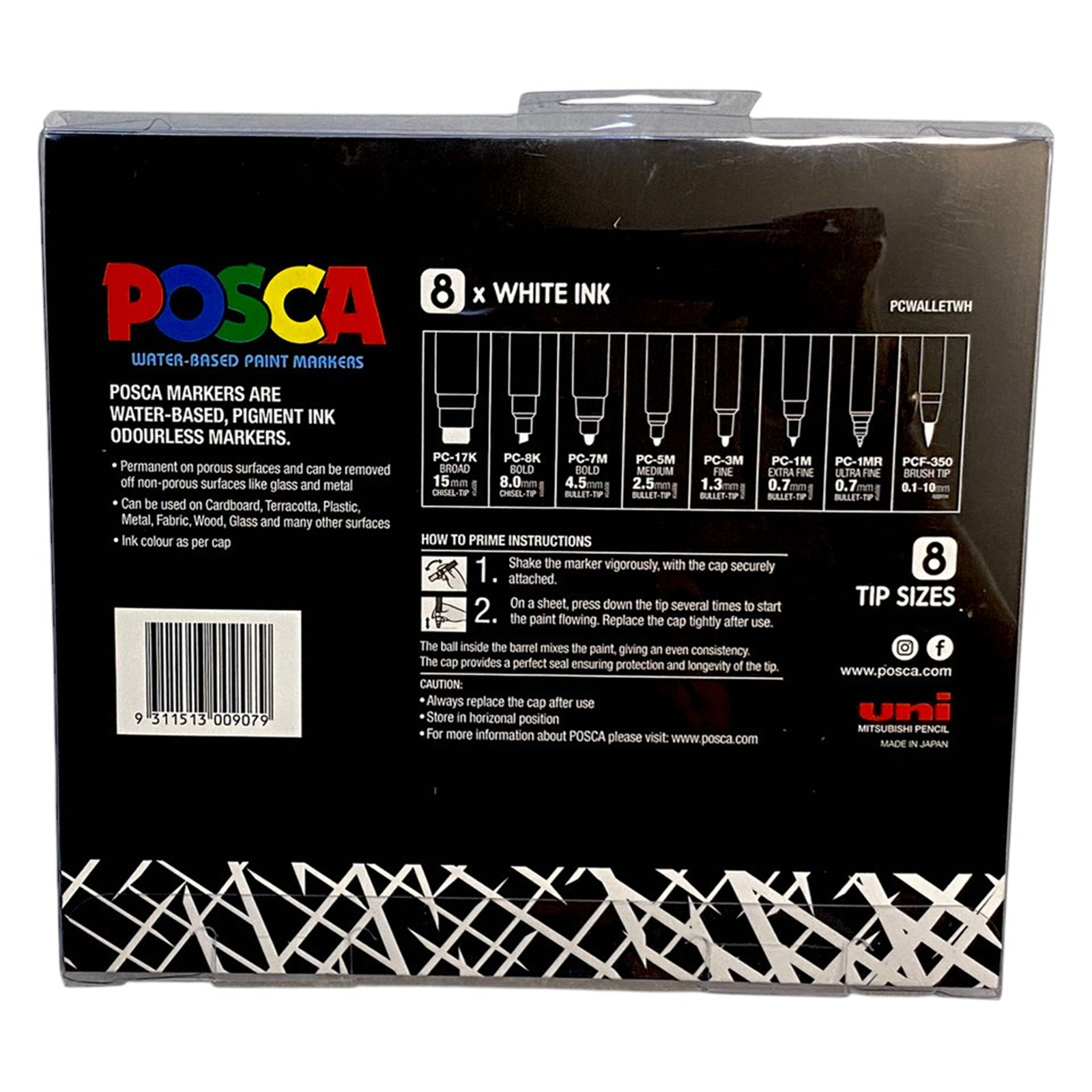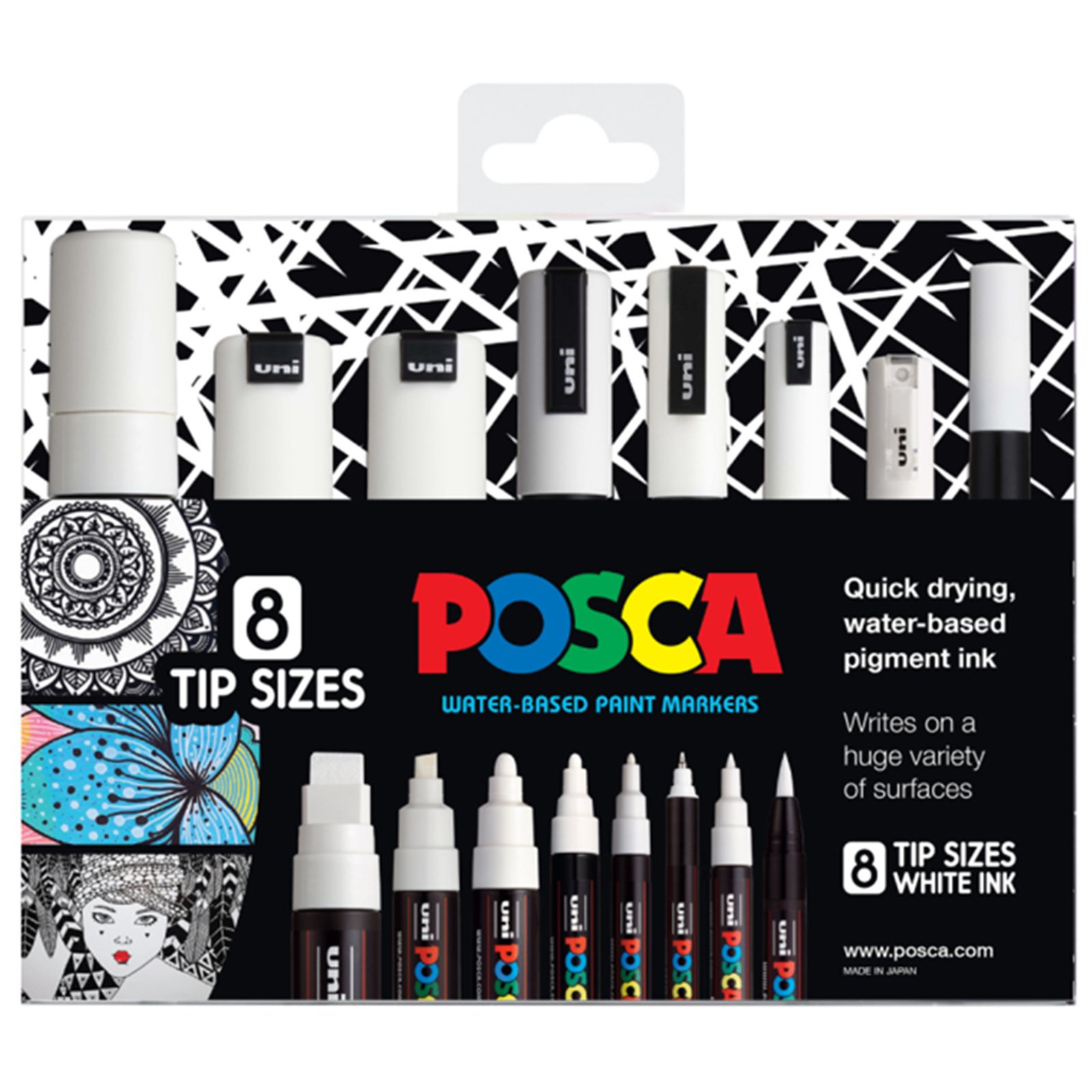 - All eight POSCA nibs in one vibrant, opaque white colour