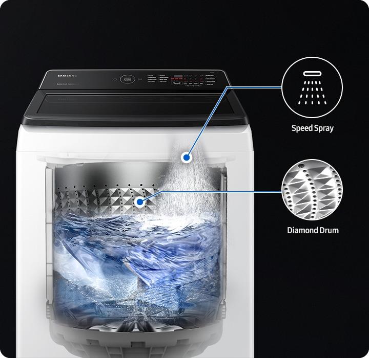 Wash powerfully and more efficiently. BubbleWash™ with Digital Inverter Technology gets clothes really clean using less energy* and less water*. BubbleStorm™ helps detergent penetrate fabric 2.5x faster** and gives up to 20% better fabric care***. Dual Storm™ creates a vortex of water current that cleans more effectively.