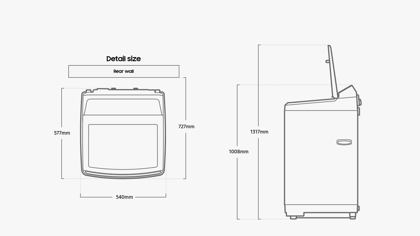 Use your washer easily and intuitively without worrying about splashing water on the digital panel. The slanted Rear Control is located at the back of the machine. It means the controls are really easy to see, even from a distance, and are protected from water splashes when getting clothes out.