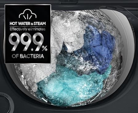 * Eliminates 99% of Bacillus pyocyaneus from the surface of a tub. Based on internal testing, verified by Intertek: equip a tub polluted with bacteria into the machine, run the Eco Tub Clean cycle and then compare the number of bacteria before and after the cycle. The Eco Tub Clean function should be used with no laundry inside the tub. Individual results may vary depending on the actual usage conditions.