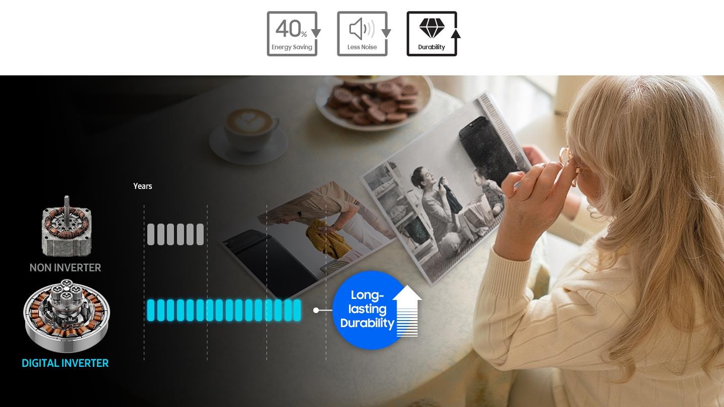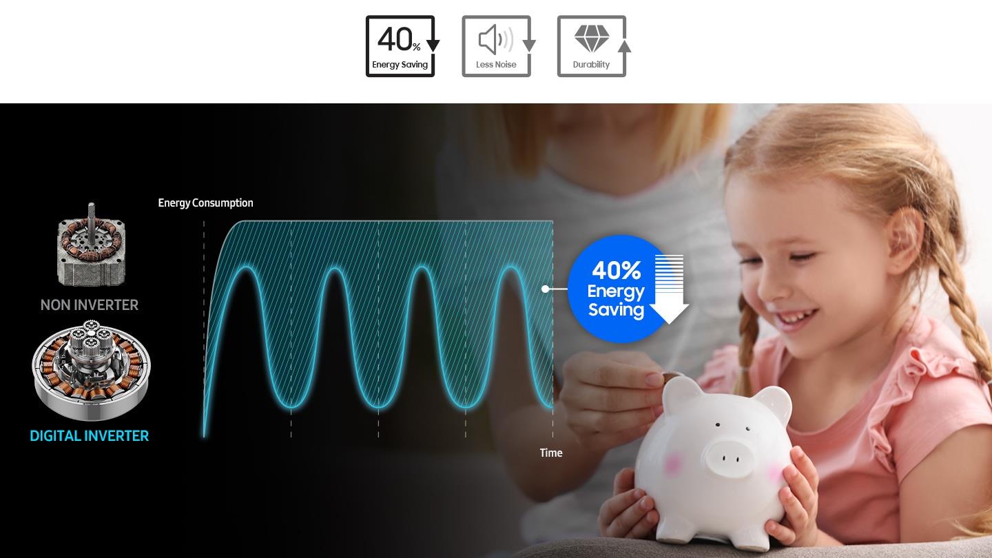 Uses up to 40% less energy* and lasts longer with Digital Inverter Technology.